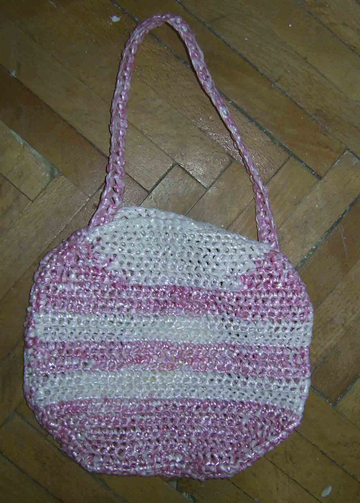 Dintr-o joacă, am inceput să croşetez cu pungi de plastic şi uitaţi ce a ieşit. Au fost mai multe, dar pe acestea am reuşit să le pozez înainte de a le face cadou.