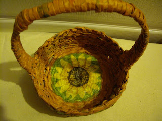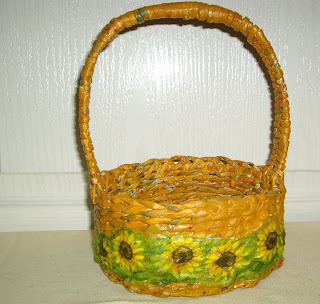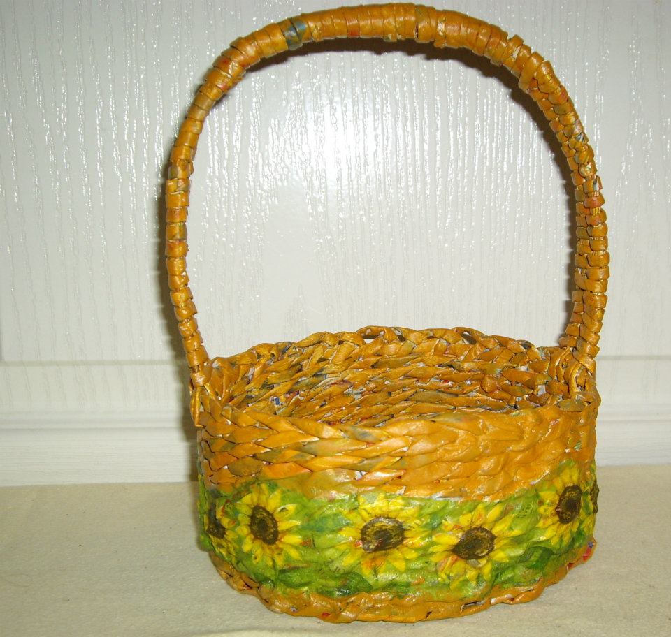 Cosulet impletit din hartie de ziar, decorat cu tehnica servetelului./ Paper wicker basket embellished with the napkin technique.