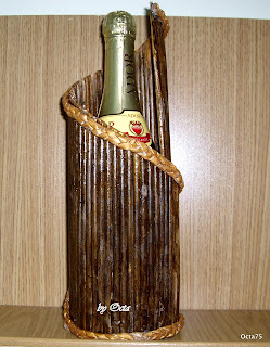Suport pentru sticla, ideal pentru un cadou inedit. Realizat integral din hartie de ziar, este vopsit cu bait de lemn si culori acrilice si lacuit.
