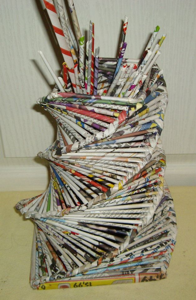 • posibilitatea de a țese o gamă largă de articole de ziar. Acestea sunt articole confecționate manual, din hârtie ca un "solid" coșuri de rufe, cutii, rafturi și chiar tabelele din tuburi ziare groase, pe de altă parte - flori de lumină delicate, fotografii, vaze de tuburi subtiri de ziar. Master însuși poate varia ușor grosimea materialului de pornire;