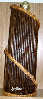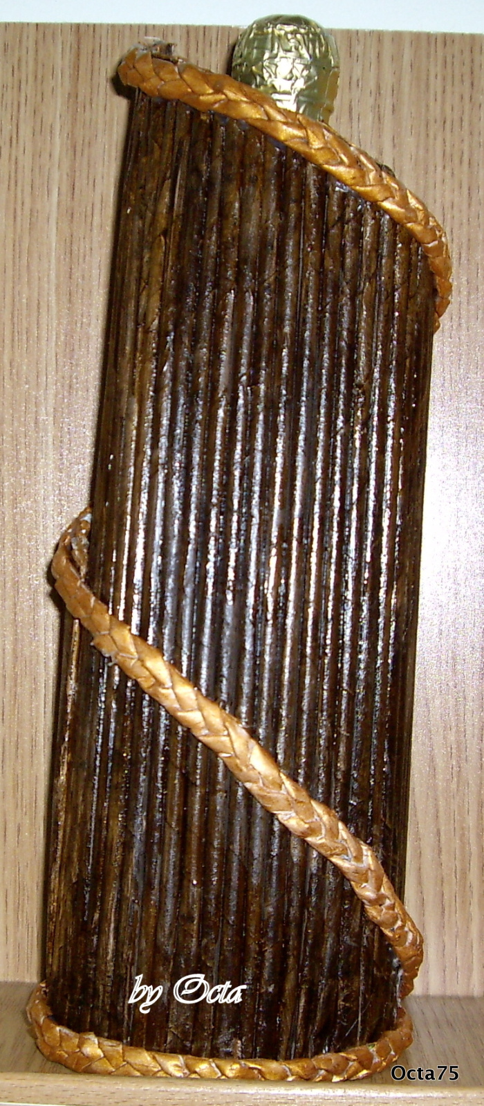 Suport pentru sticla, ideal pentru un cadou inedit. Realizat integral din hartie de ziar, este vopsit cu bait de lemn si culori acrilice si lacuit.