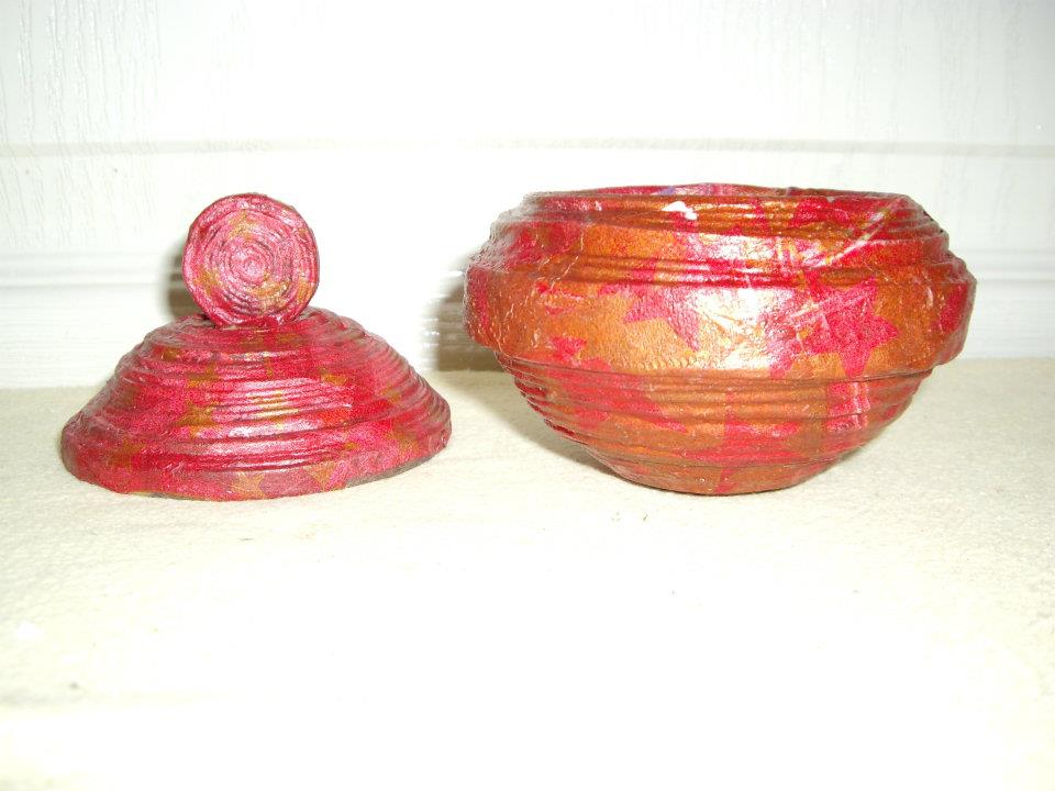 Cutiuta realizata din hartie de ziar si decorata cu tehnica servetelului/ Made from old newspaper and embellished using the napkin technique.